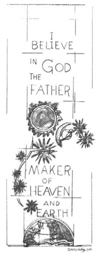 The sun, moon, stars, and earth used as illustrated material carry out the thought expressed in Luther’s Catechism; “I believe that God has created me and all that exists; He has given me and still preserves my body and soul….all this He does out of fatherly and divine goodness and mercy….therefore I surely ought to thank, praise, serve and obey Him.