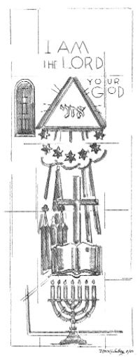 The triangle at the top is a symbol for the Holy Trinity. The Hebrew word “Adonoi” meaning “Lord our God” within the triangle signifies that God is eternal.